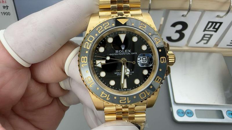 Clean Greenwich All Gold Century egg Circle adopts 3285 all-in-one movement, which is the ultimate replica counter technology. Electroplated with 18K, it is also possible to customize a gold case with mirror polishing, wire drawing and polishing. The Cerachrom ceramic two-color ring mouth has a natural transition, and the GMT pointer and scale have precise luminous filling. The strap structure, crown logo and other details are all restored in a 1:1 ratio, equipped with an improved movement with smooth timing adjustment, ensuring stable travel. The overall texture is comparable to the original, making it suitable for players who pursue top-level replicas to collect.Clean厂格林尼治全金皮蛋圈采用3285一体机芯,极致复刻专柜工艺。电镀18K另外还可以包金定制金表壳镜面抛光拉丝打磨,Cerachrom陶瓷双色圈口过渡自然,GMT指针与刻度夜光填充精准。表带结构、皇冠LOGO等细节均1:1还原,搭载调时流畅的改良机芯,走时稳定。整体质感媲美原装,适合追求顶级复刻的玩家收藏。